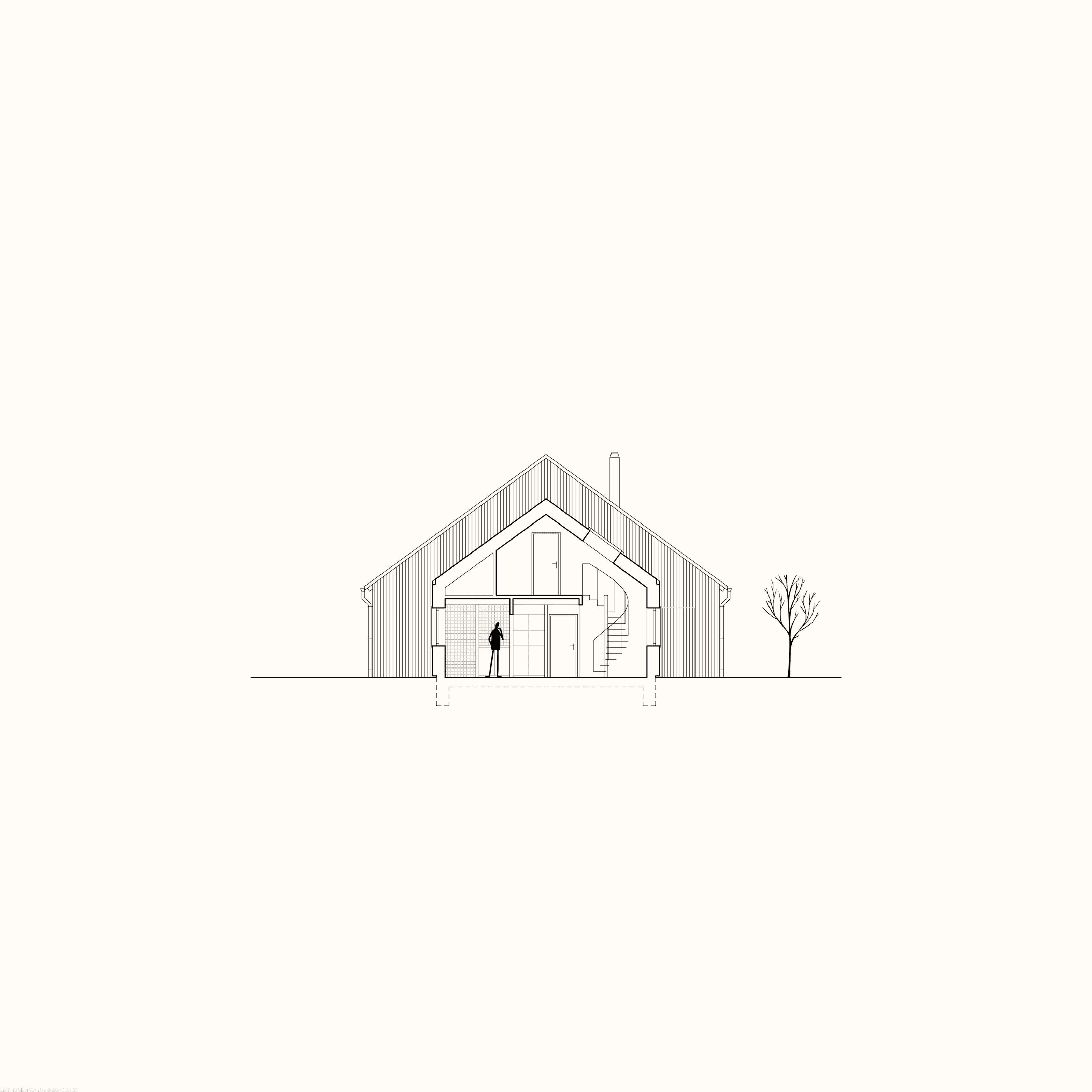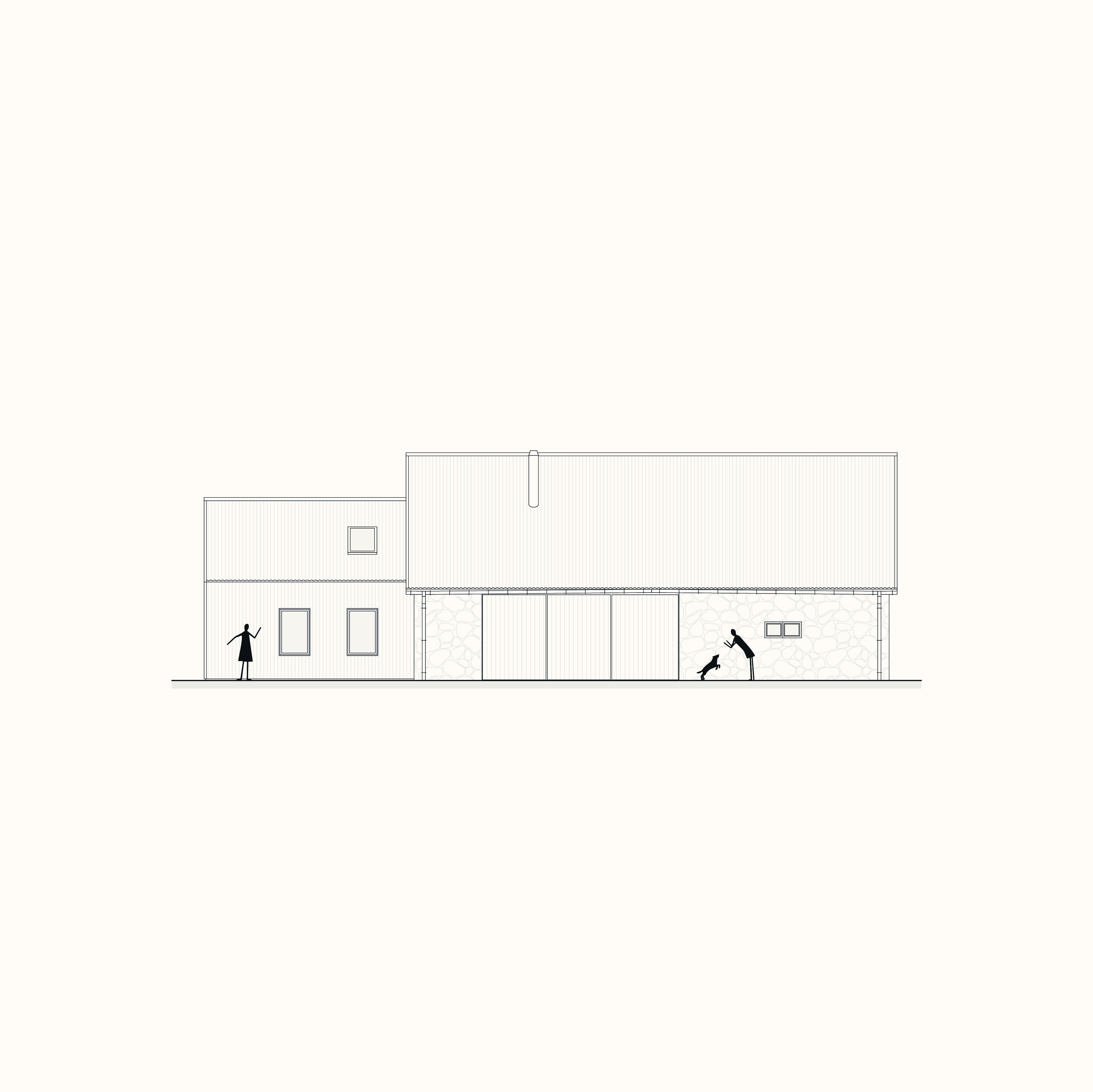Původní stodola má silného ducha. Ten jsme chtěli zachovat. Proto jsme nezasahovali víc, než bylo nutné. Prostor jsme vyčistili, opravili jen to, co bylo potřeba, a otevřeli ho světlu a vzduchu. Do jejího nitra jsme vložili nový dům, dřevěnou zateplenou stavbu, která umožňuje prostor plnohodnotně užívat po celý rok. Stodola tak zůstává obalem, krajinou uvnitř domu. Nový dům je jeho teplým srdcem. Staré nese paměť místa, nové přináší komfort a každodenní fungování. Spolu tvoří celek, který působí klidně a přirozeně.