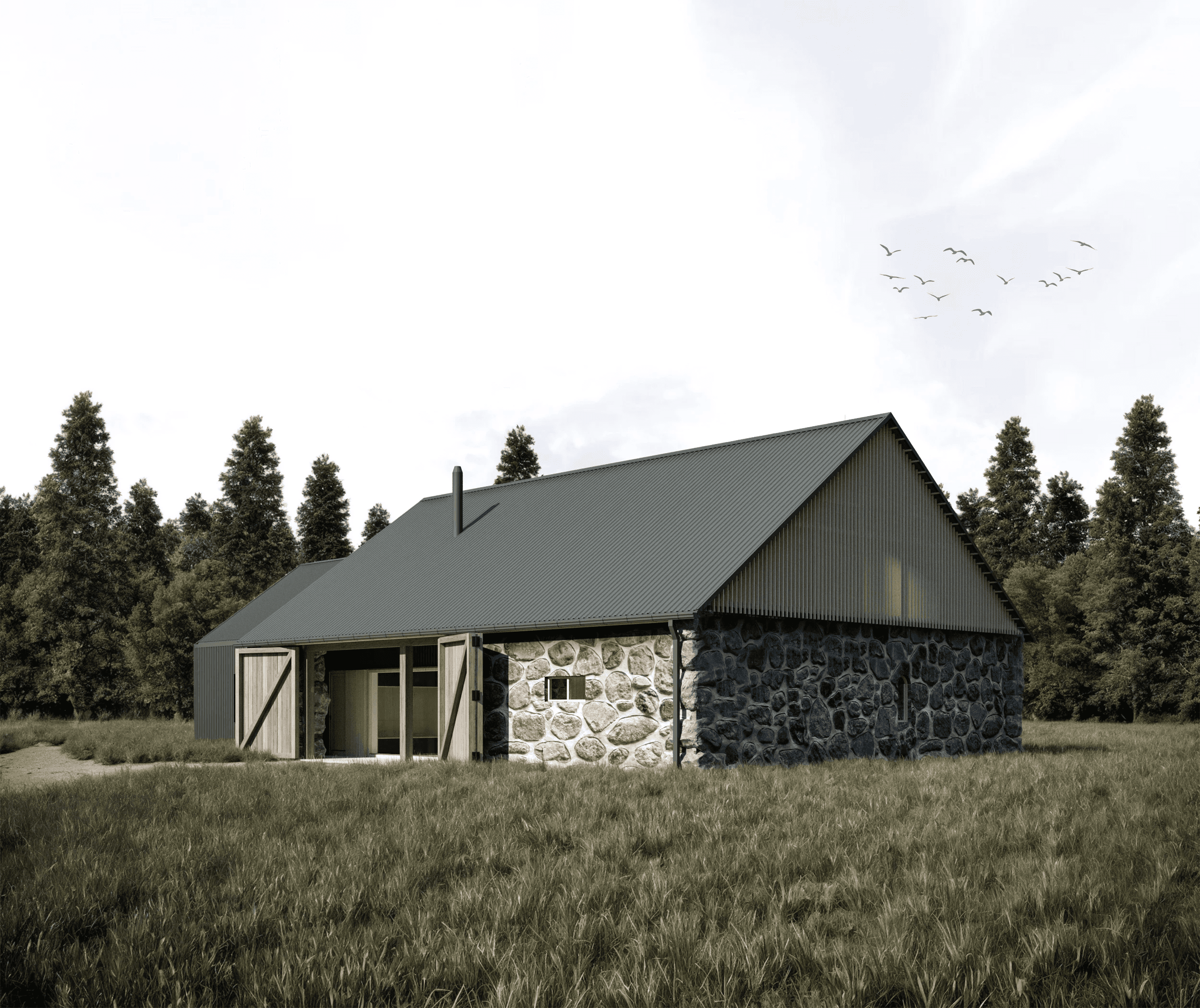 Spojením starého s novým vzniklo místo, které navazuje na to, co tu bylo. Prostor pro práci i odpočinek. Pro samotu i společné chvíle u velkého stolu. Místo, kde se zpomalí dech, čas běží jinak a věci se dějí tiše a přirozeně.
