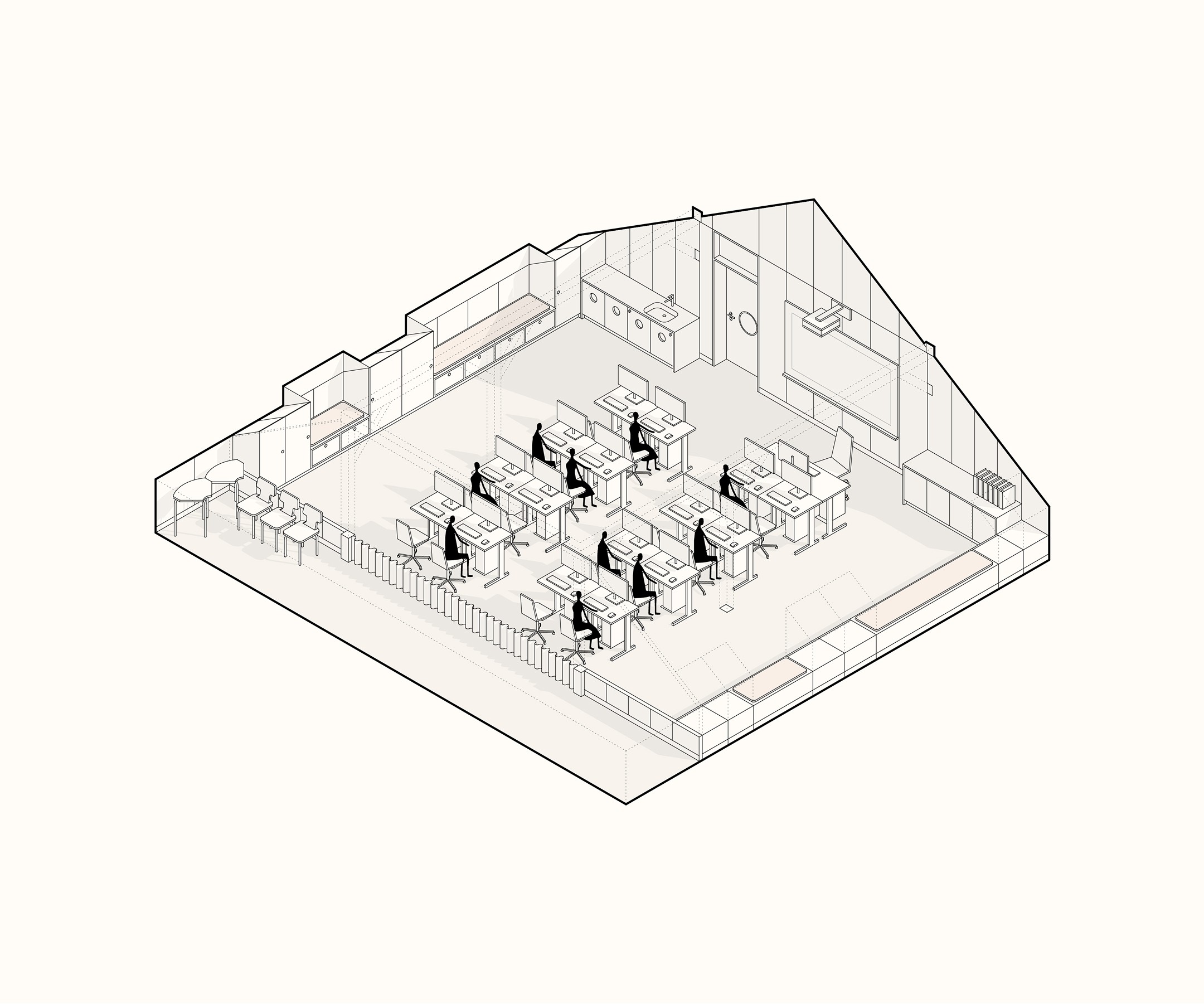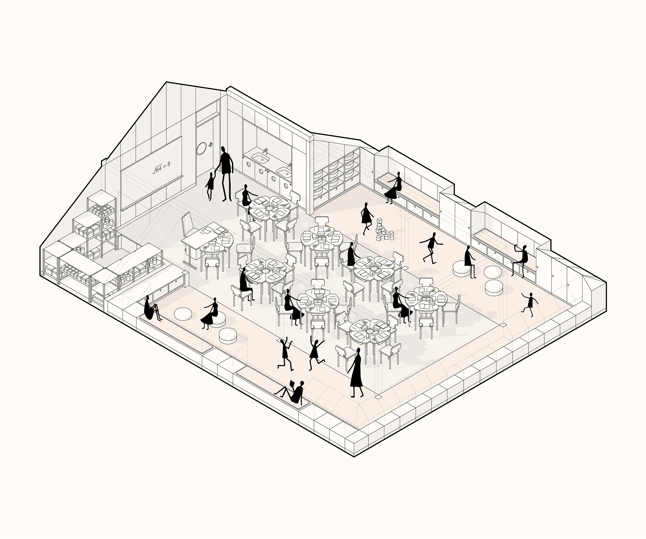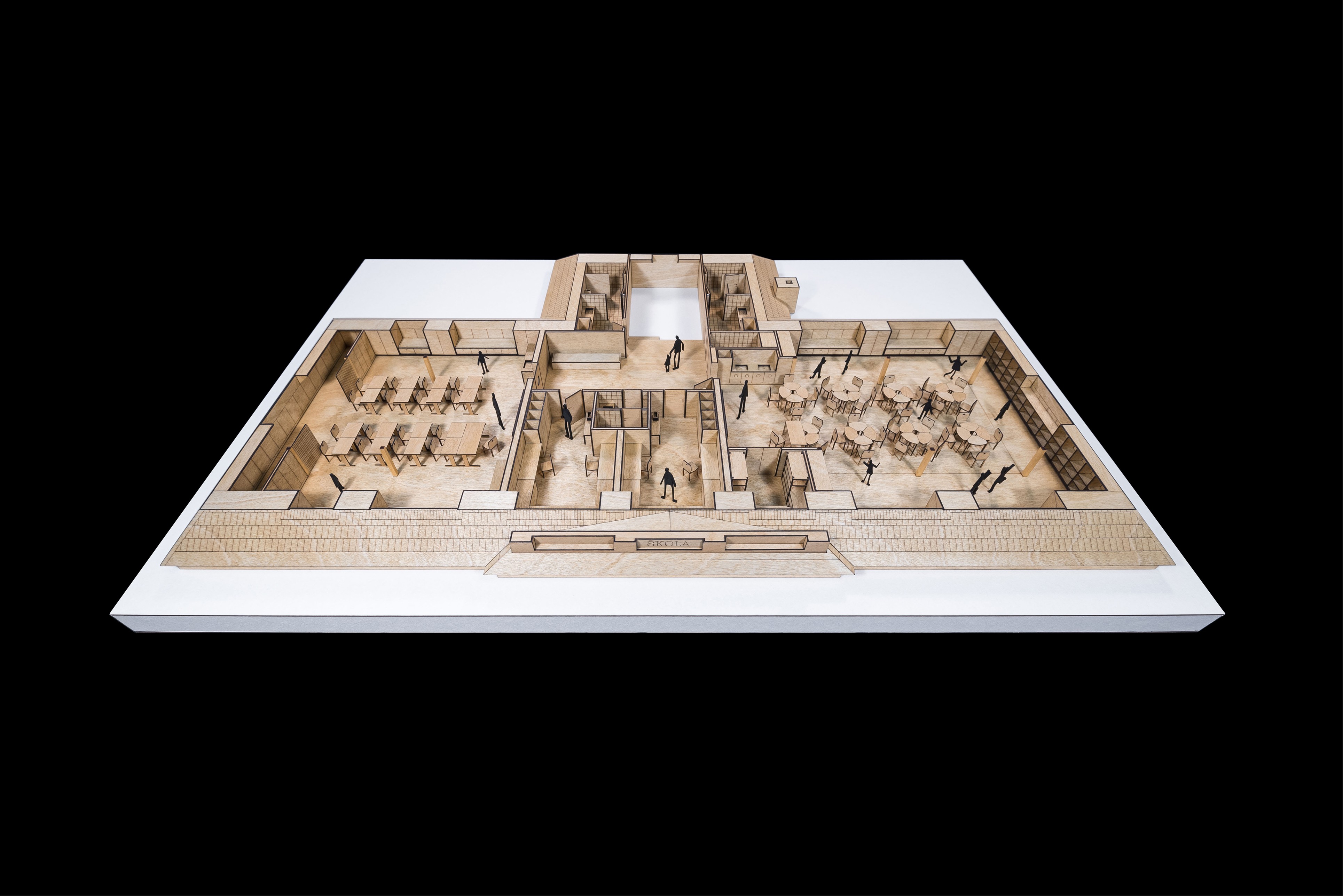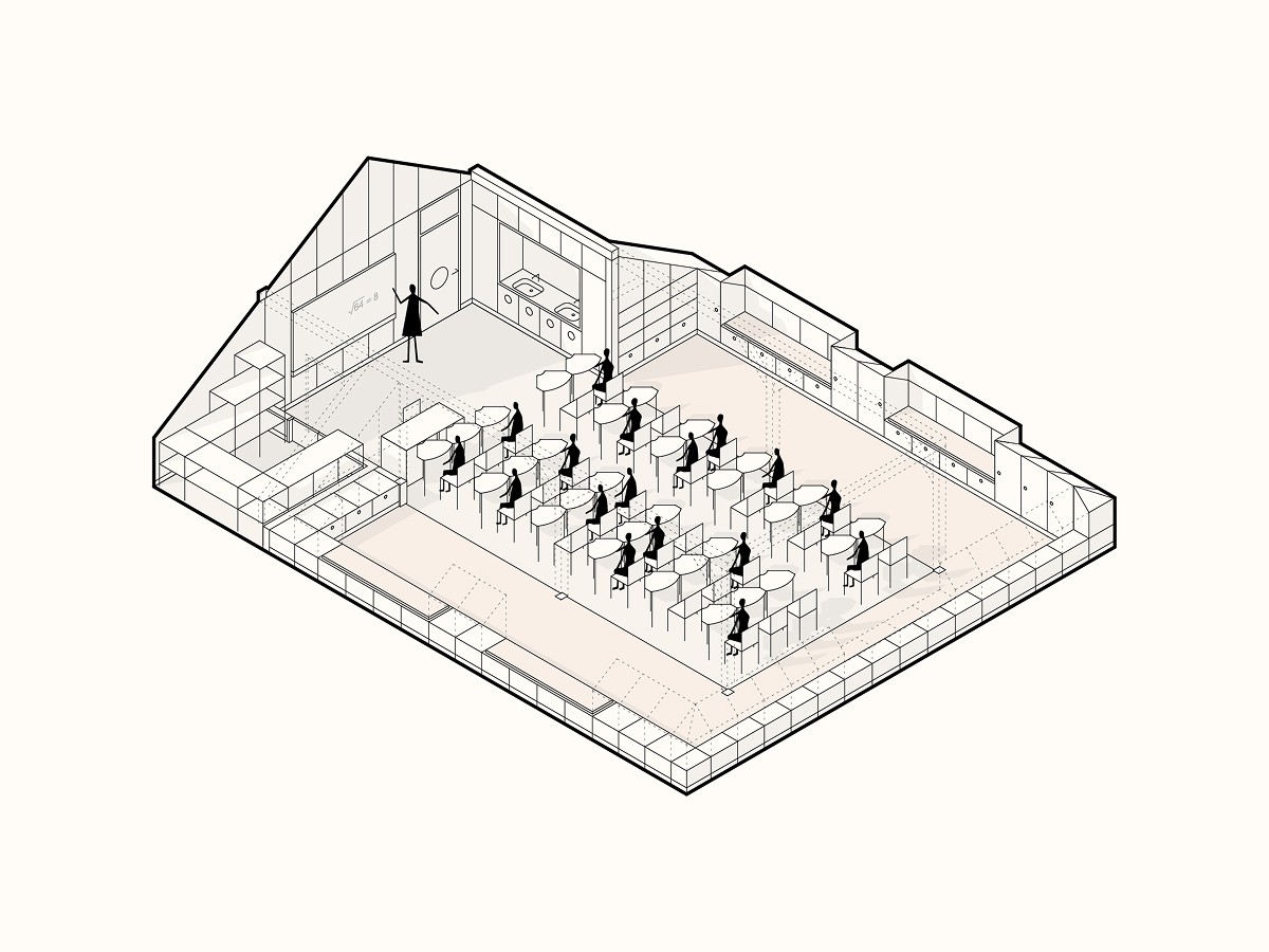 Návrh vznikal v úzké spolupráci s vedením školy. Učitelé přesně popsali, co potřebují, a my jsme tomu přizpůsobili dispozice i detaily. Společně jsme promýšleli provozní vazby, úložné prostory, pohyb dětí i rytmus dne. Návrh jsme průběžně konzultovali s odborníky i dotčenými orgány, aby byl nejen krásný, ale také funkční a proveditelný.