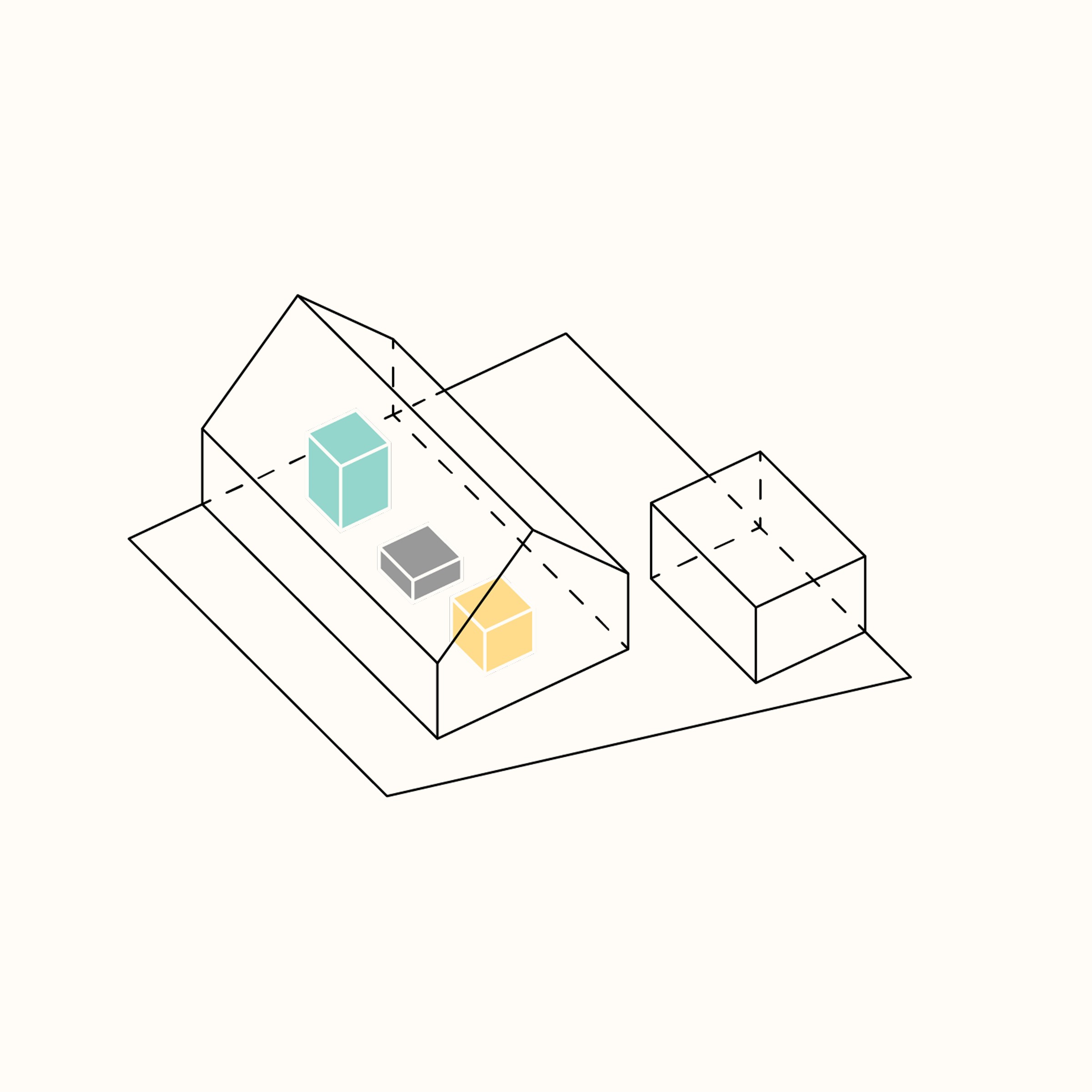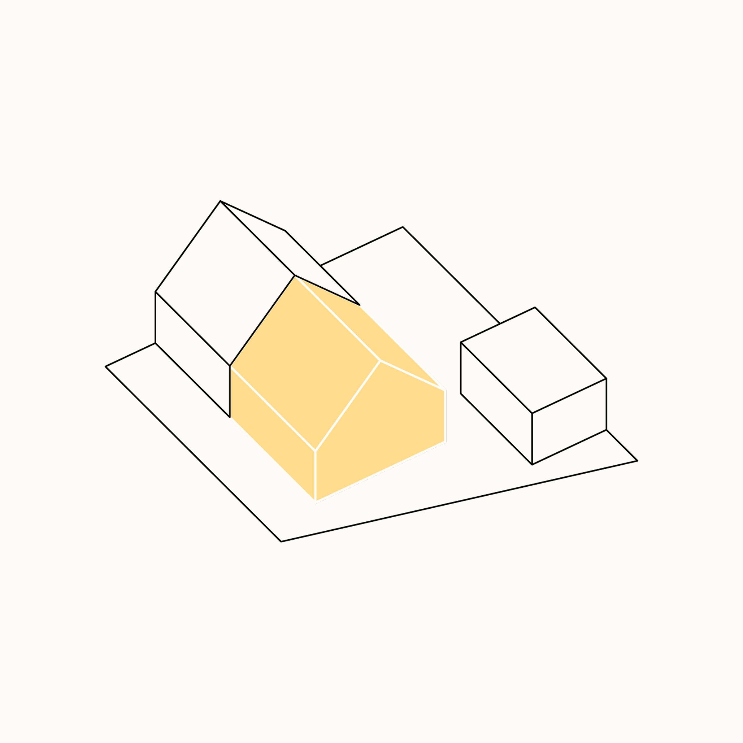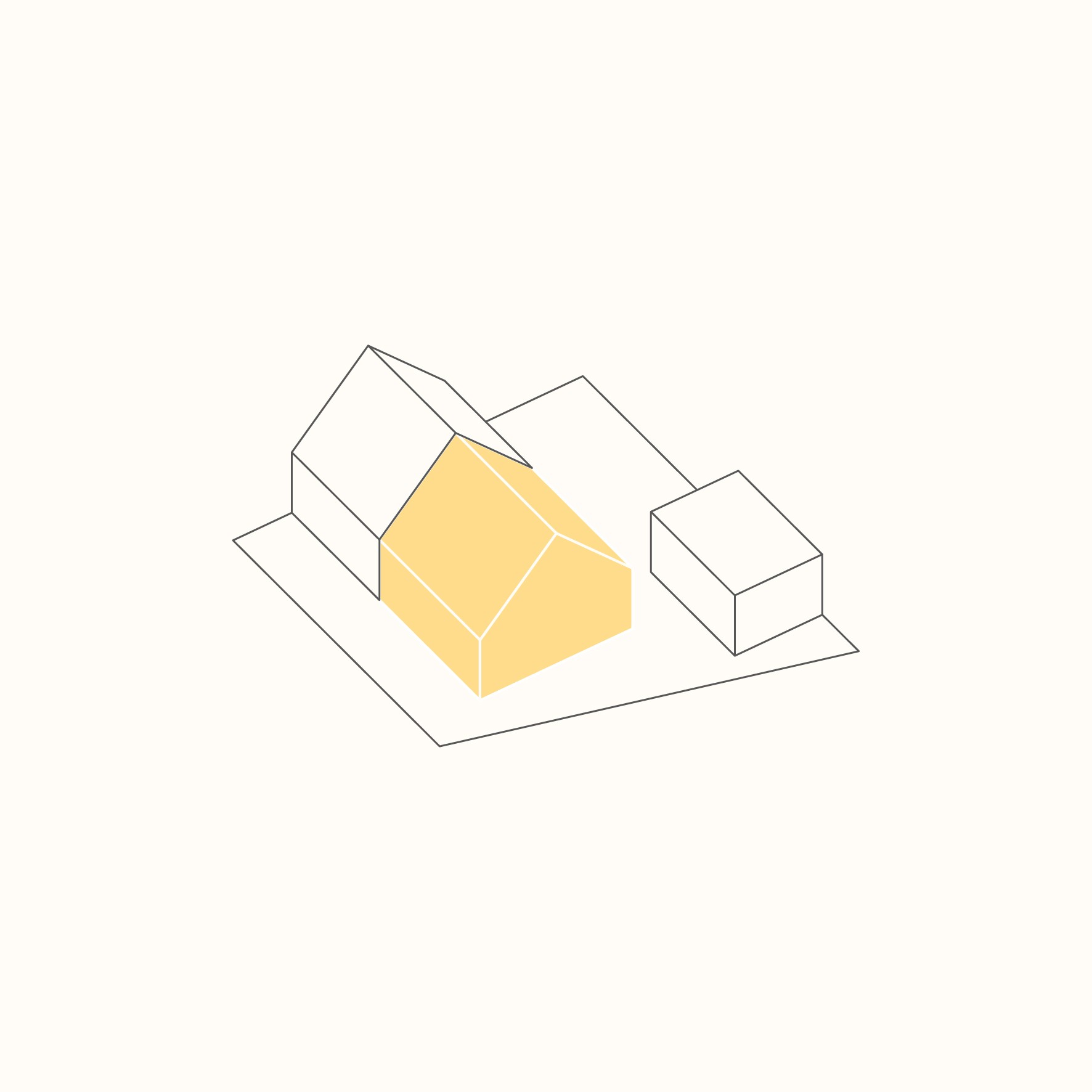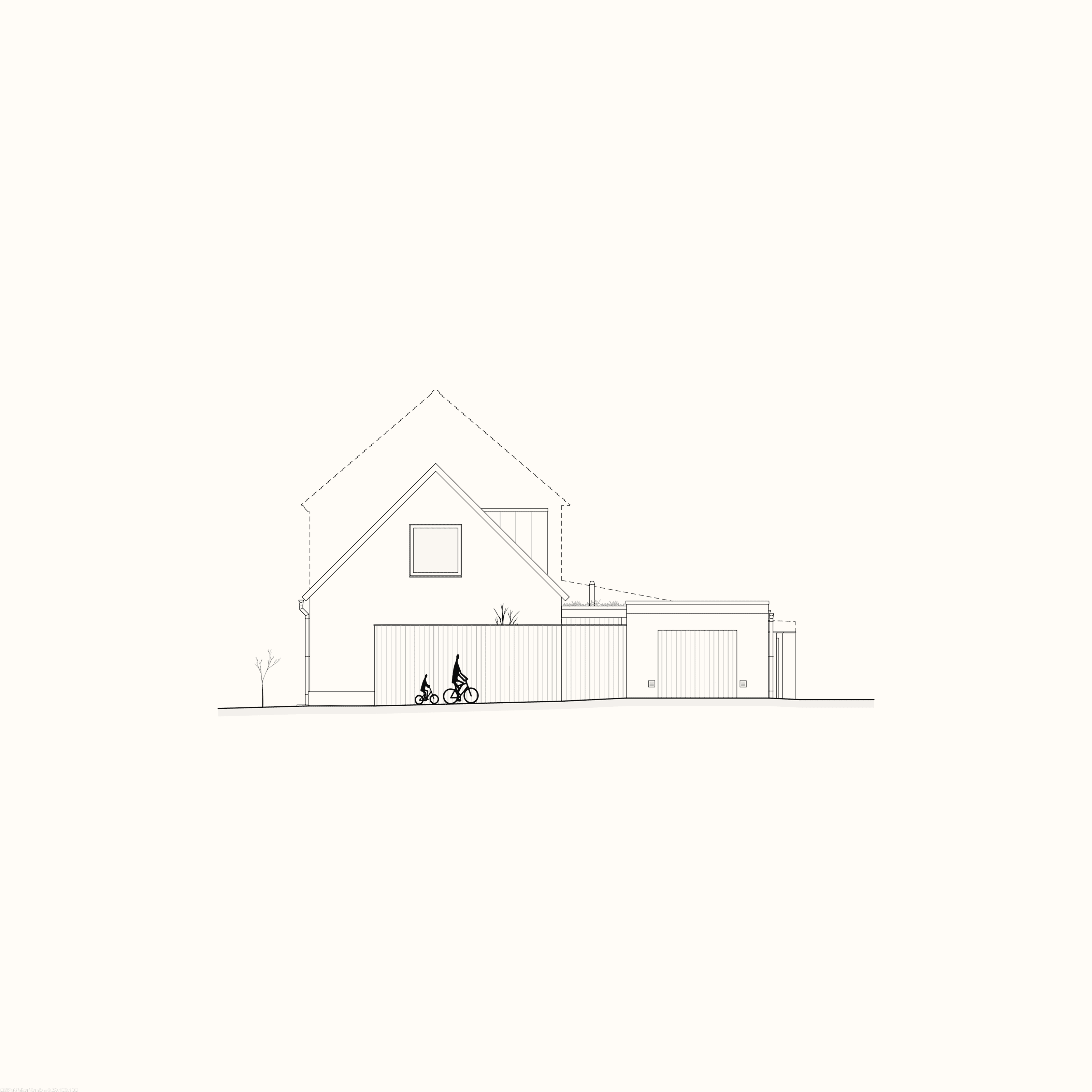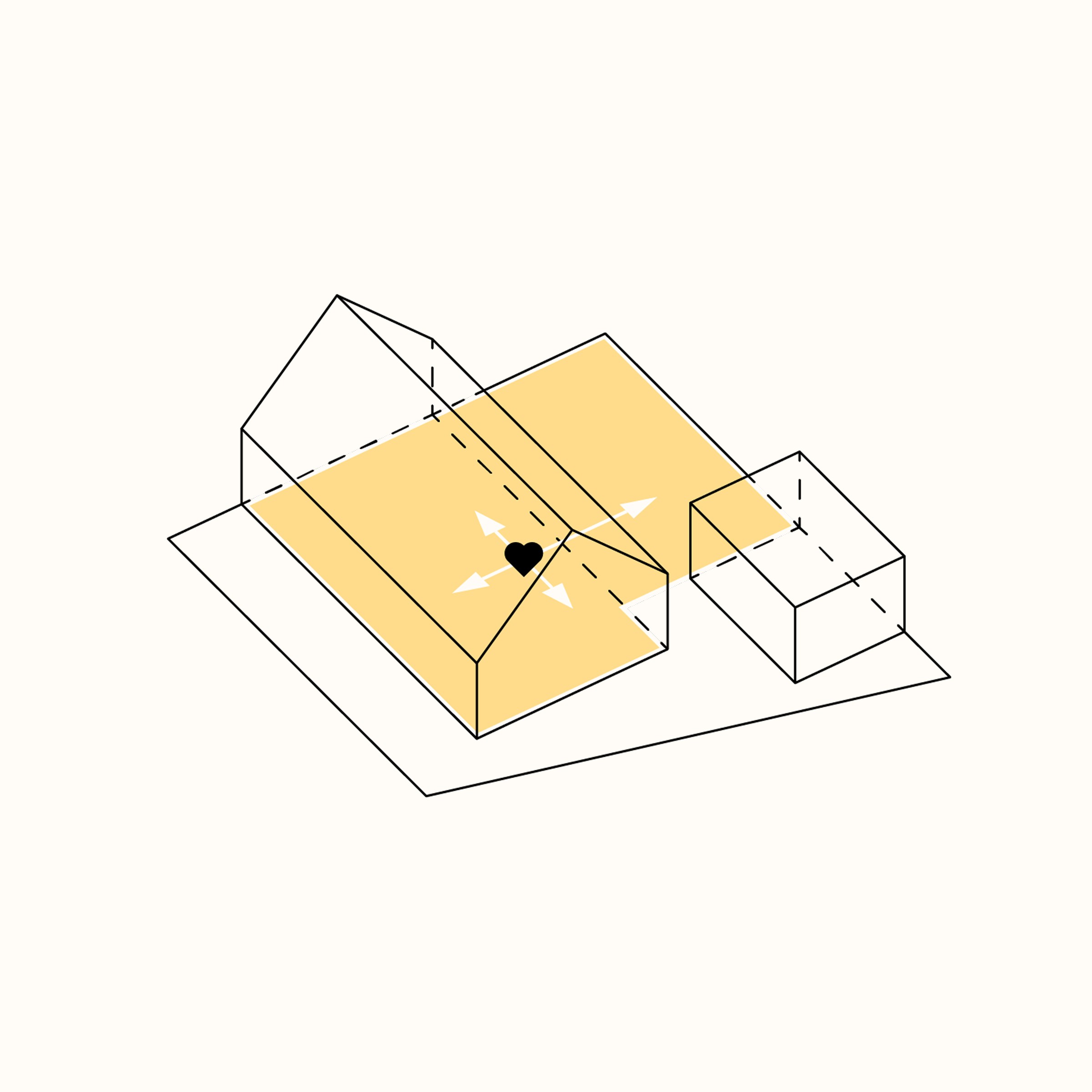 Směr dostavby určilo samo místo. Ulice má jasný rytmus starých hornických domků, proto dům rozšiřujeme jednoduchou hmotou se sedlovou střechou. Středem návrhu je společenský prostor propojený se zahradou. Odtud se dům přirozeně rozvíjí dál. Do ateliéru, dílny a do klidného patra pro celou rodinu. Vzniká tak domov, který drží pohromadě to společné i to osobní.
