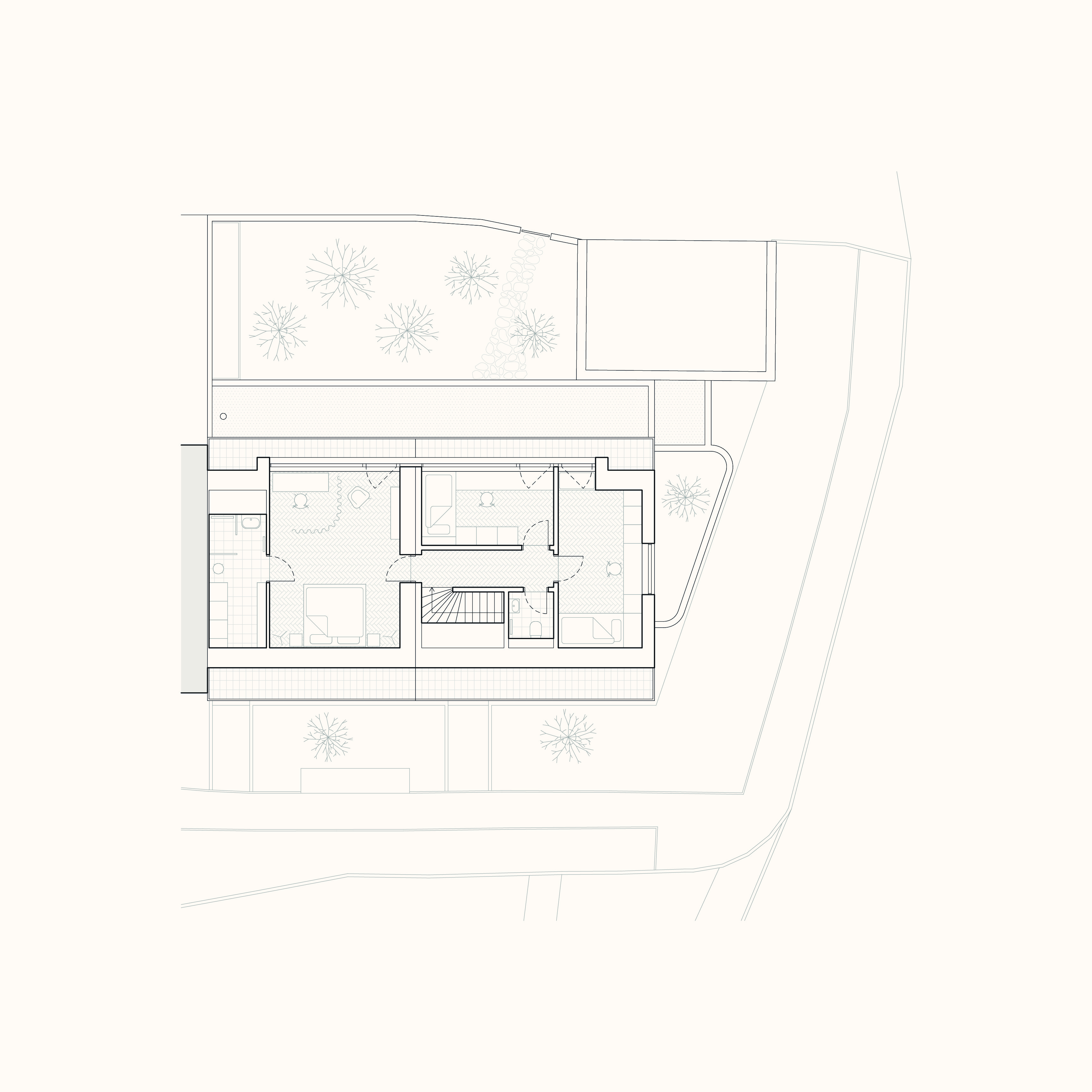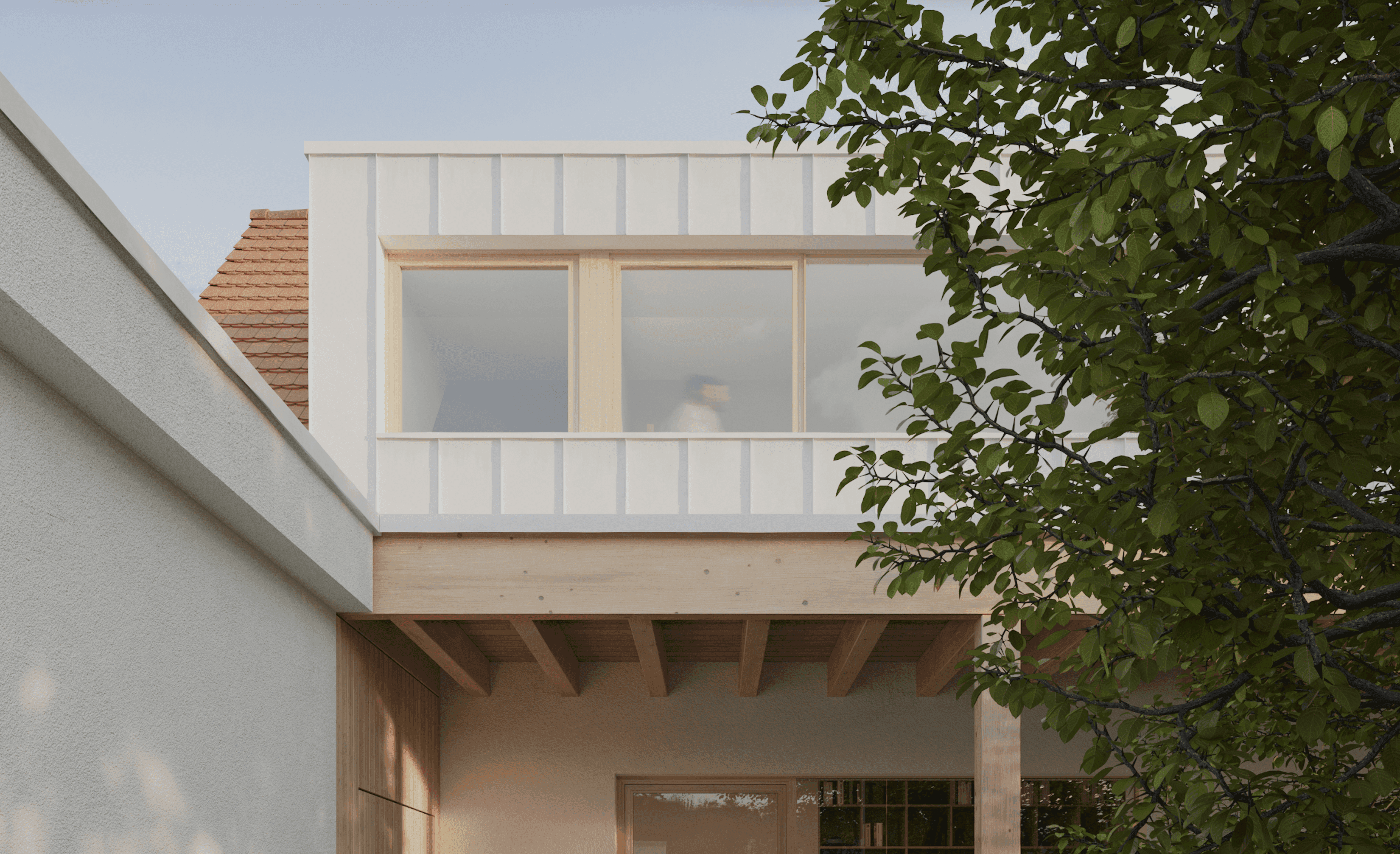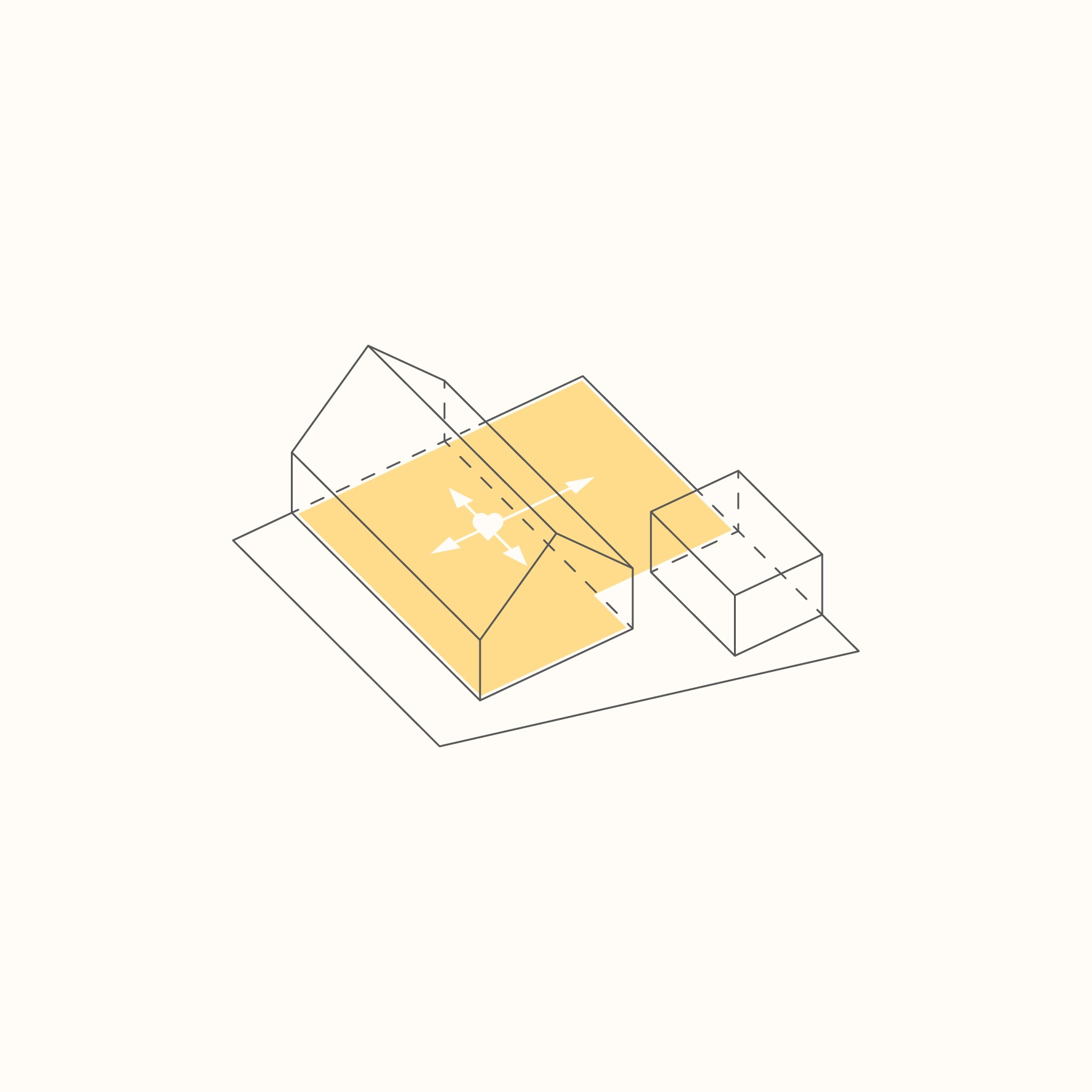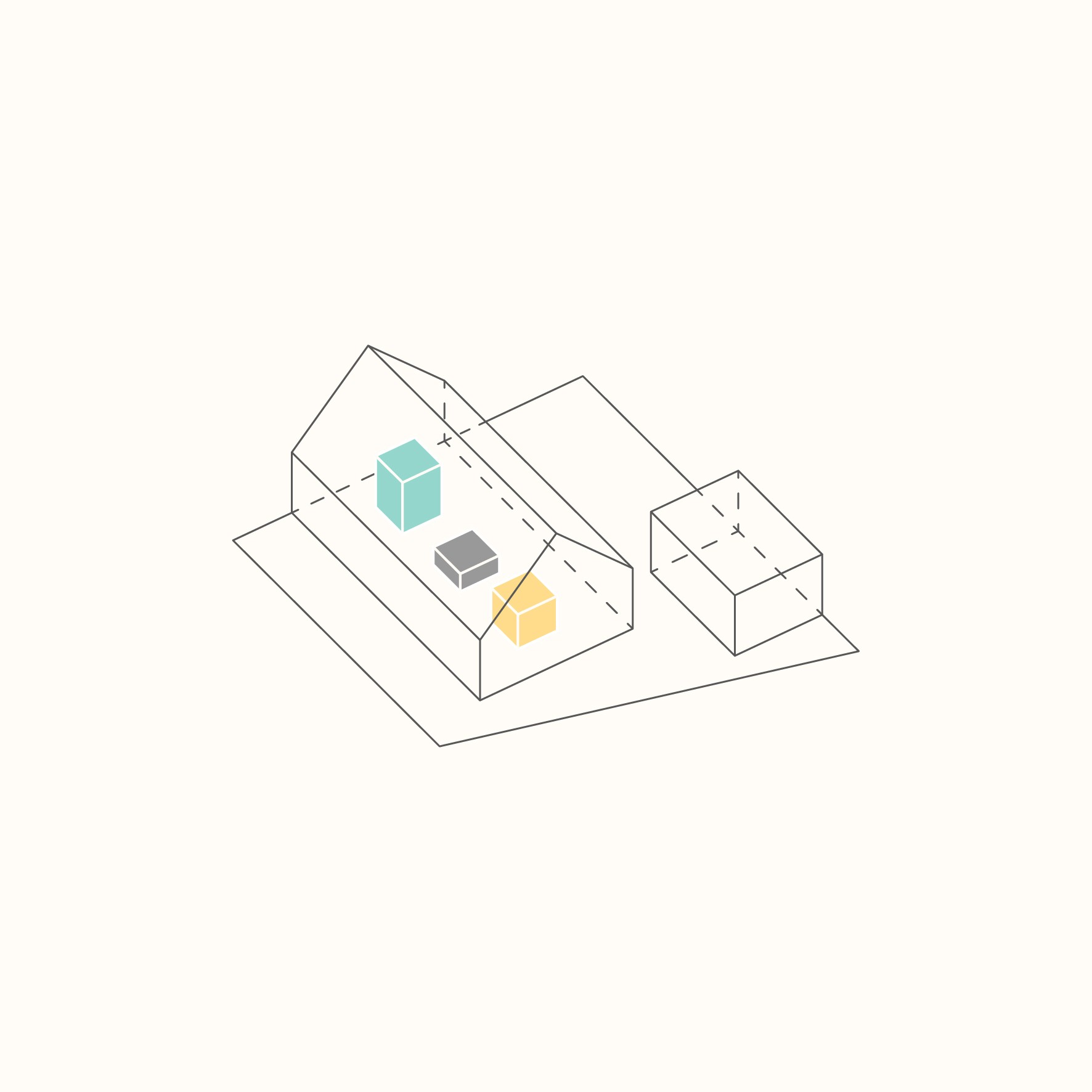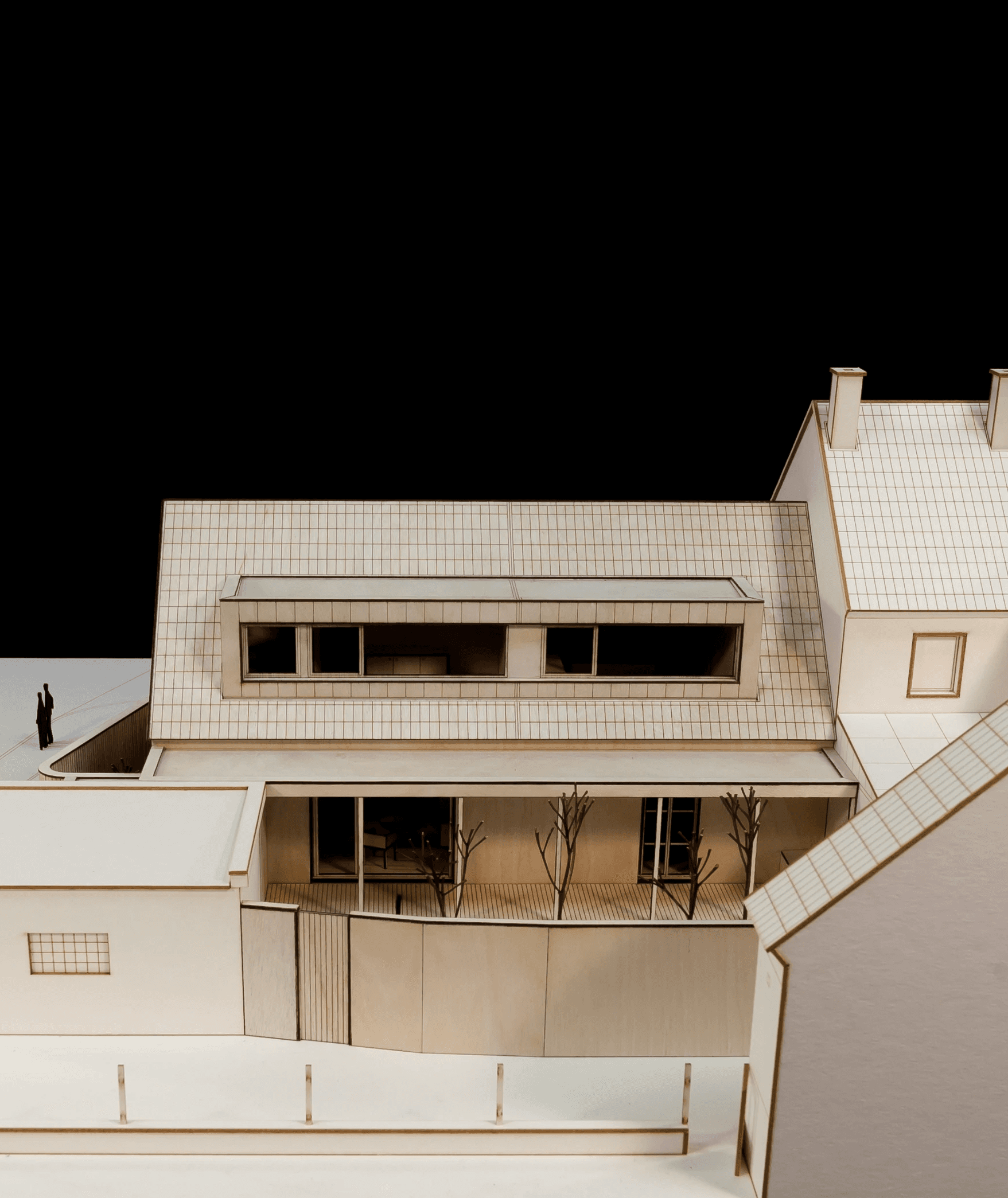 Směr dostavby určilo samo místo. Ulice má jasný rytmus starých hornických domků, proto dům rozšiřujeme jednoduchou hmotou se sedlovou střechou. Středem návrhu je společenský prostor propojený se zahradou. Odtud se dům přirozeně rozvíjí dál. Do ateliéru, dílny a do klidného patra pro celou rodinu. Vzniká tak domov, který drží pohromadě to společné i to osobní.
