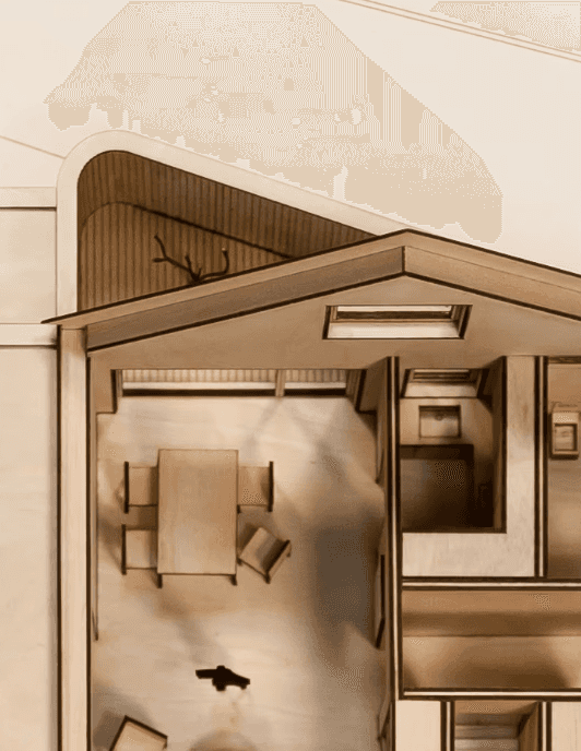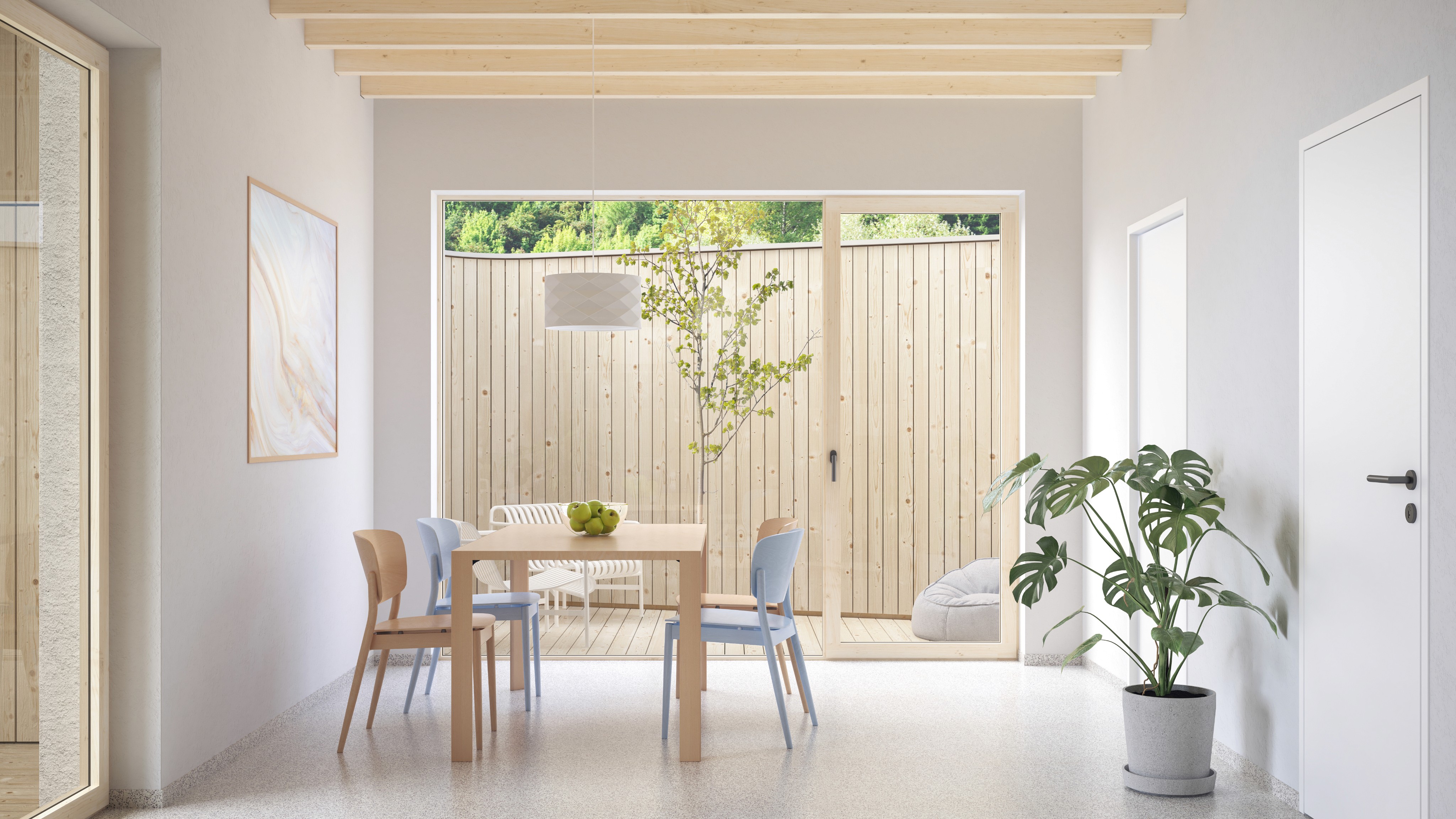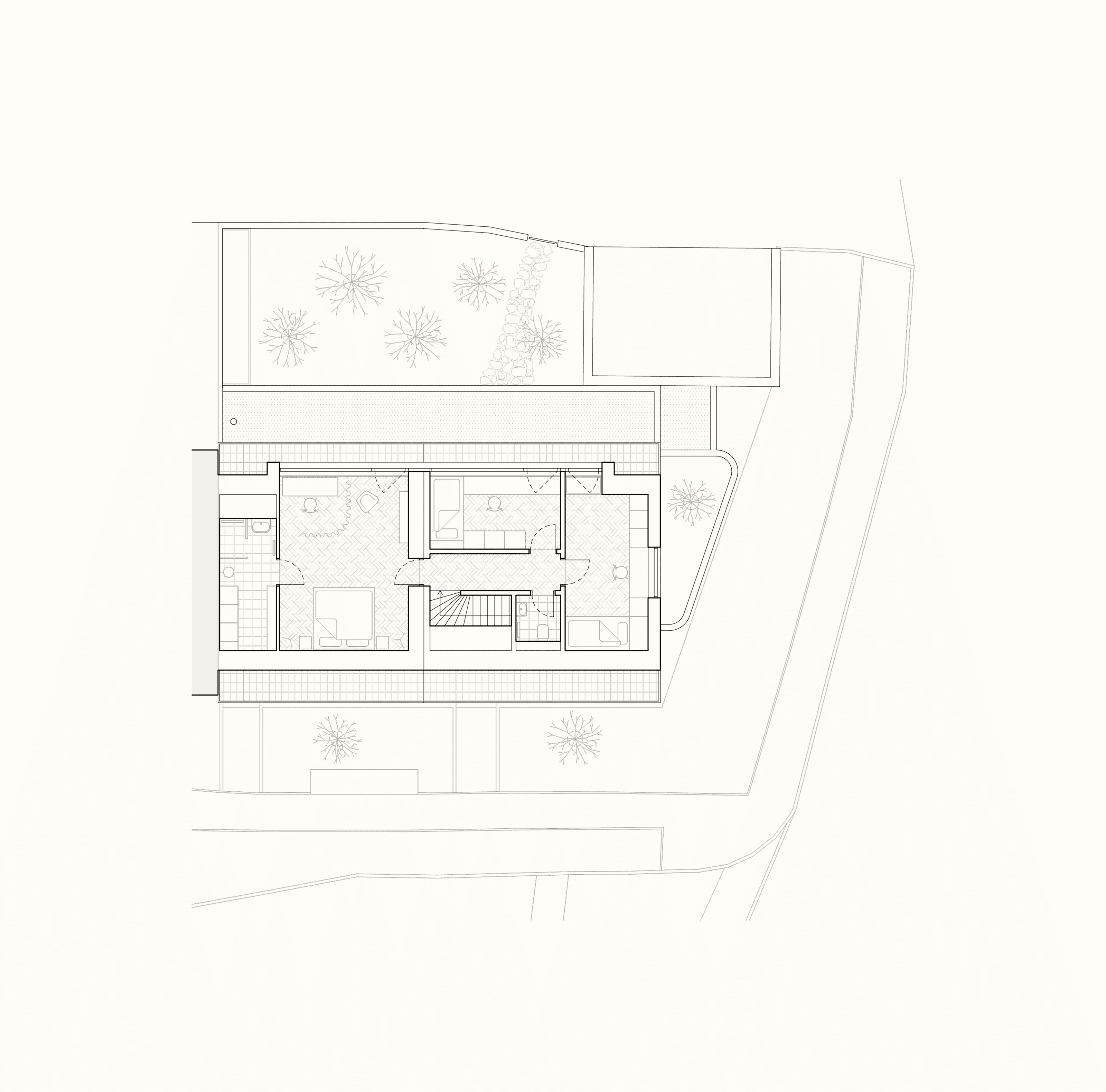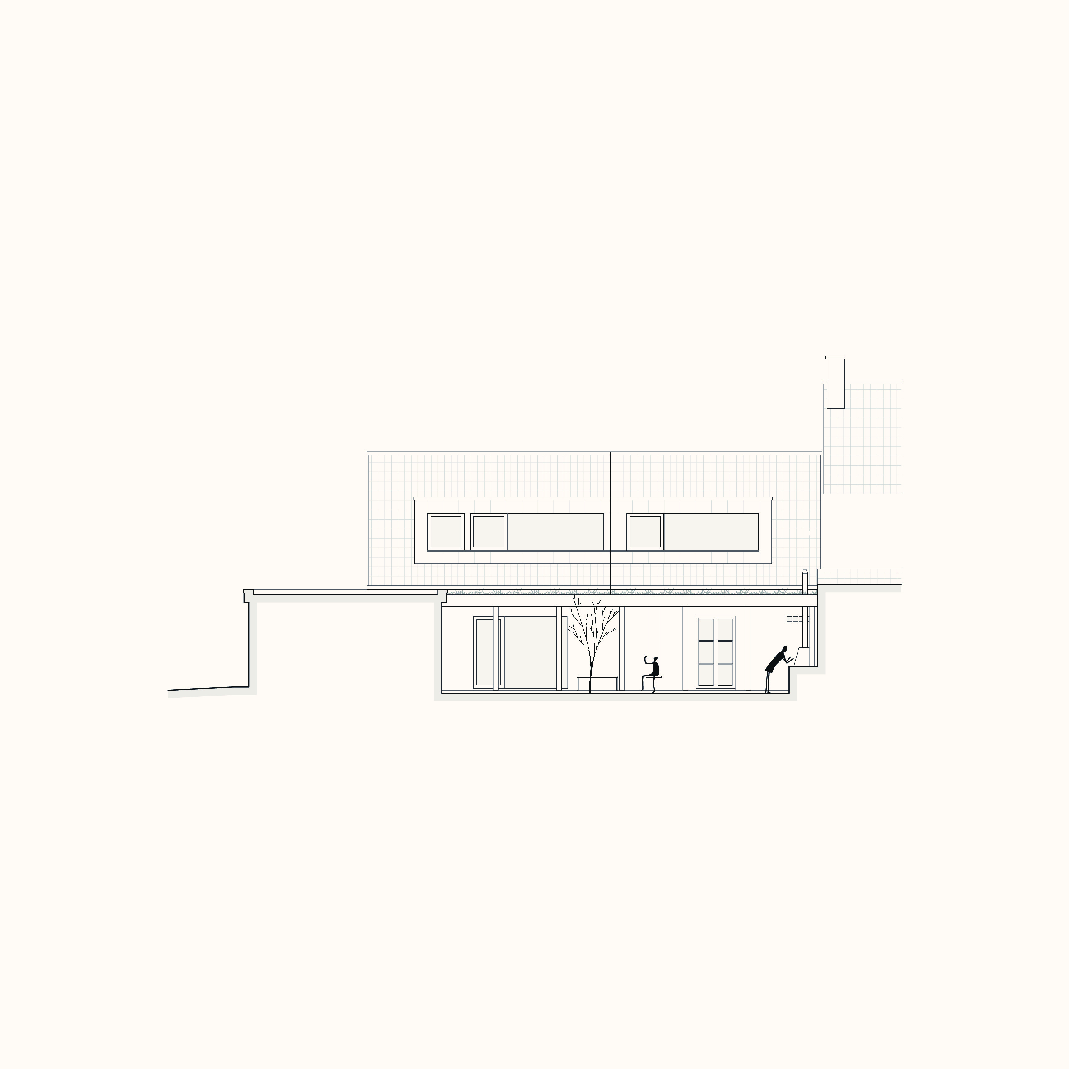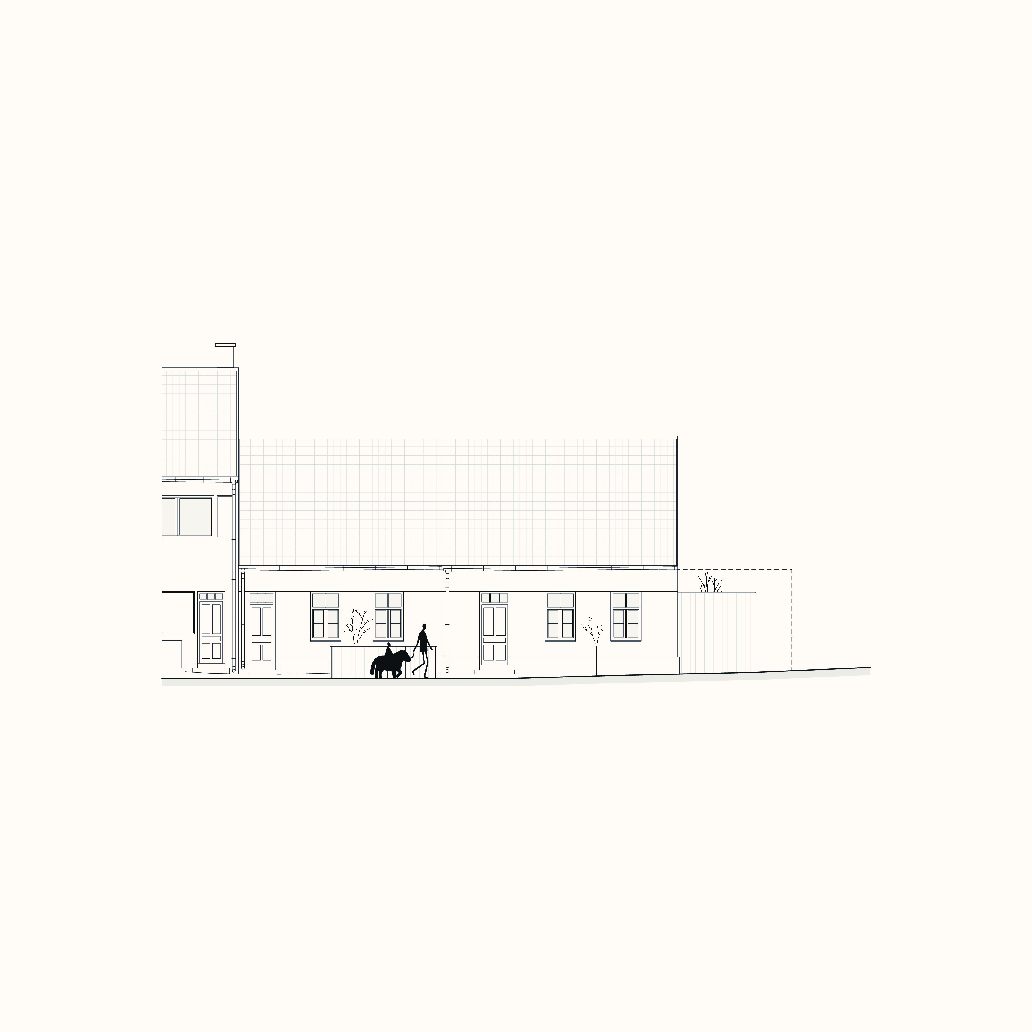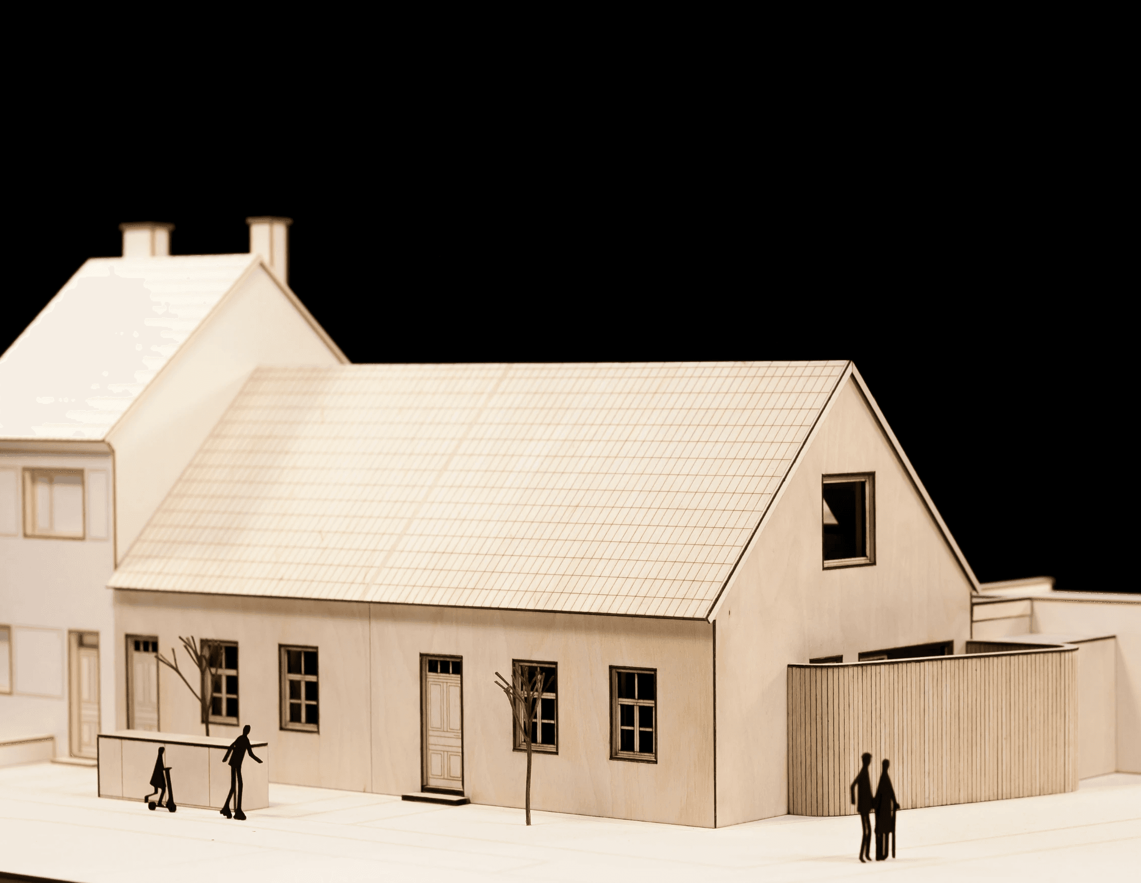 Směr dostavby určilo samo místo. Ulice má jasný rytmus starých hornických domků, proto dům rozšiřujeme jednoduchou hmotou se sedlovou střechou. Středem návrhu je společenský prostor propojený se zahradou. Odtud se dům přirozeně rozvíjí dál. Do ateliéru, dílny a do klidného patra pro celou rodinu. Vzniká tak domov, který drží pohromadě to společné i to osobní.
