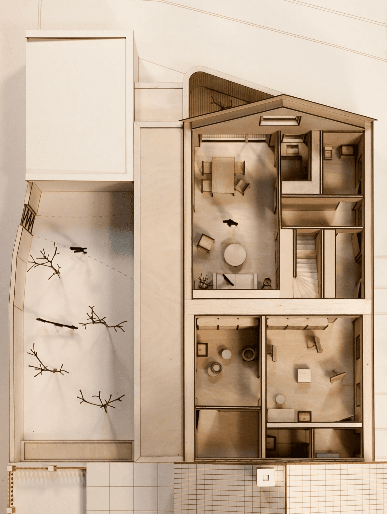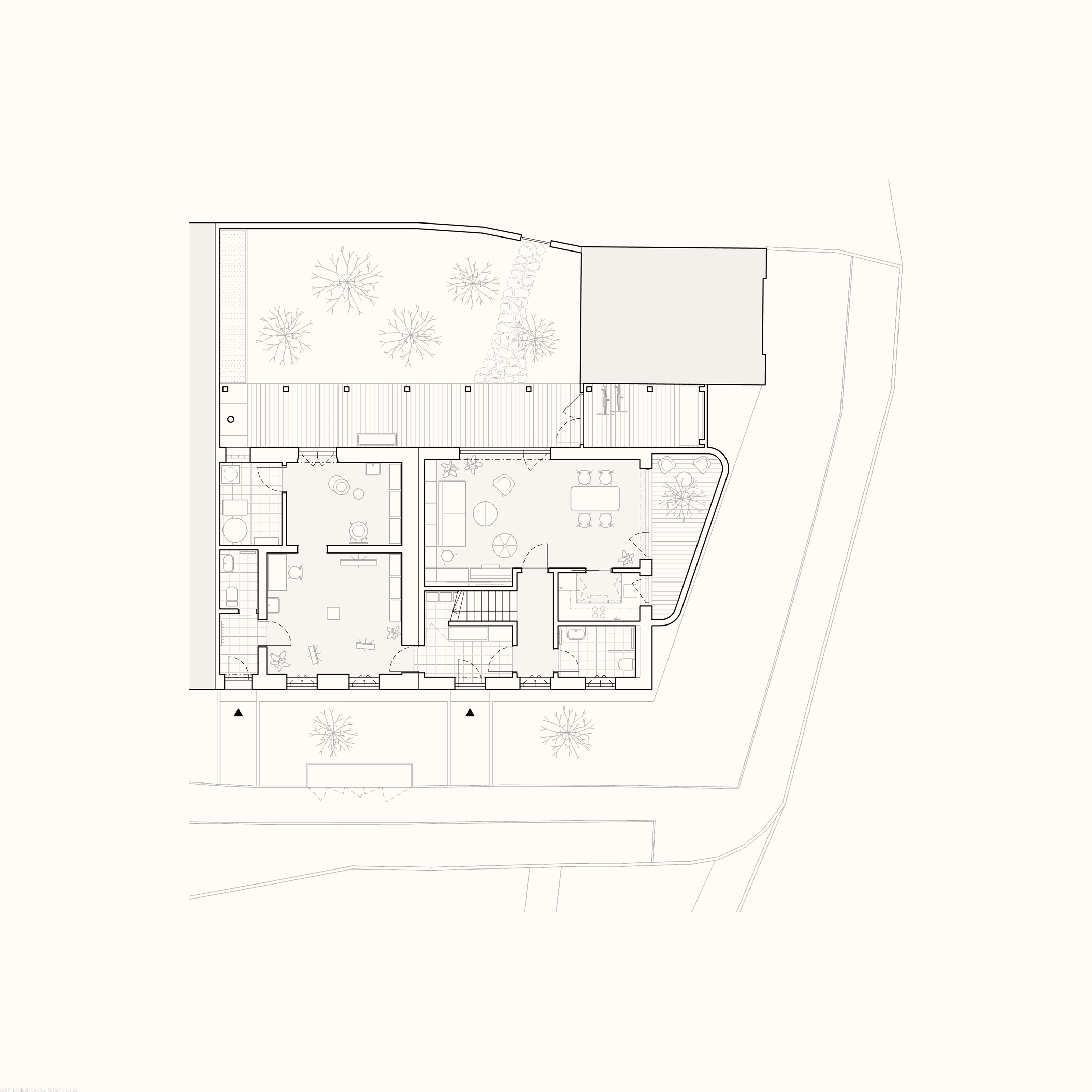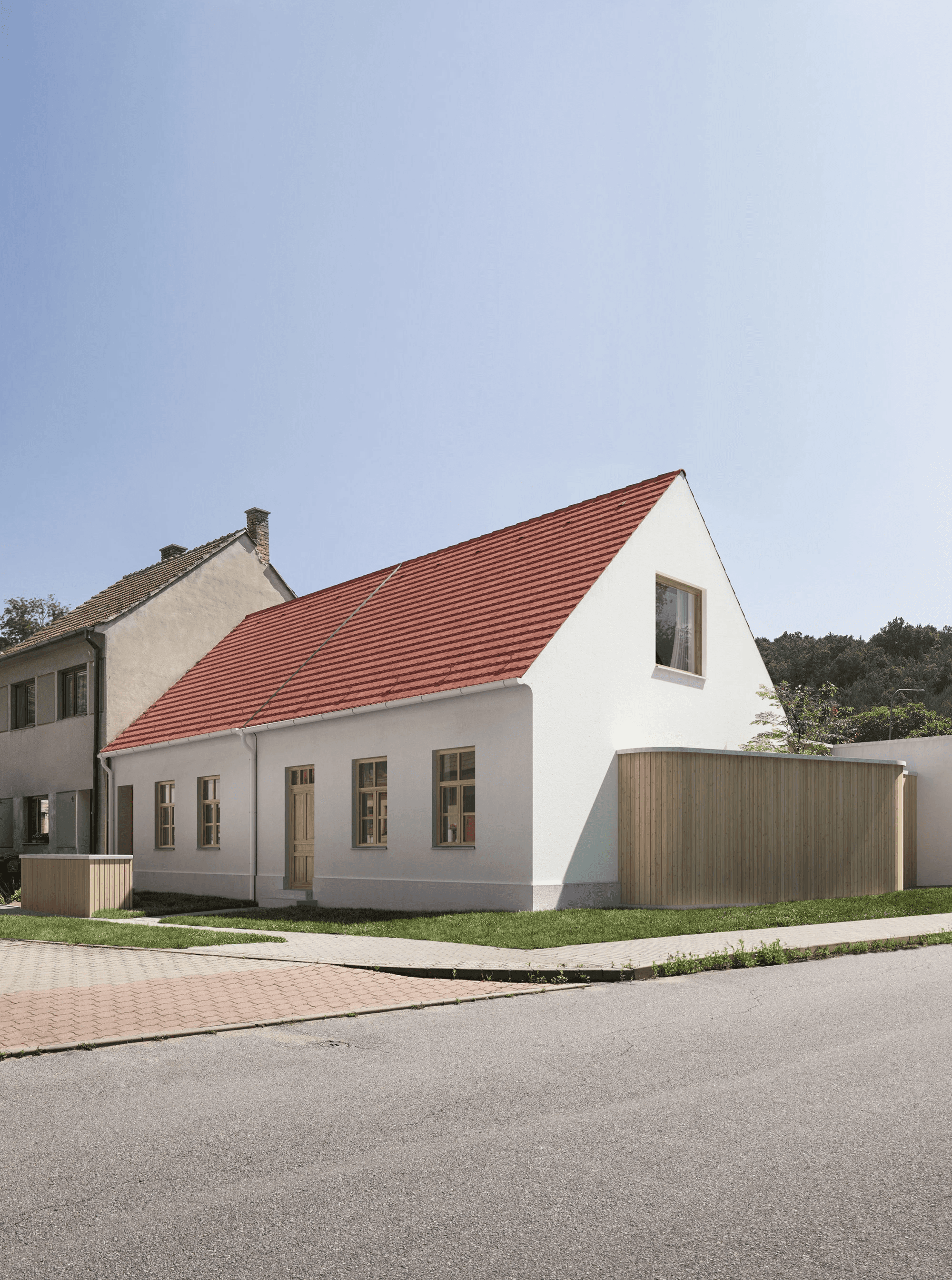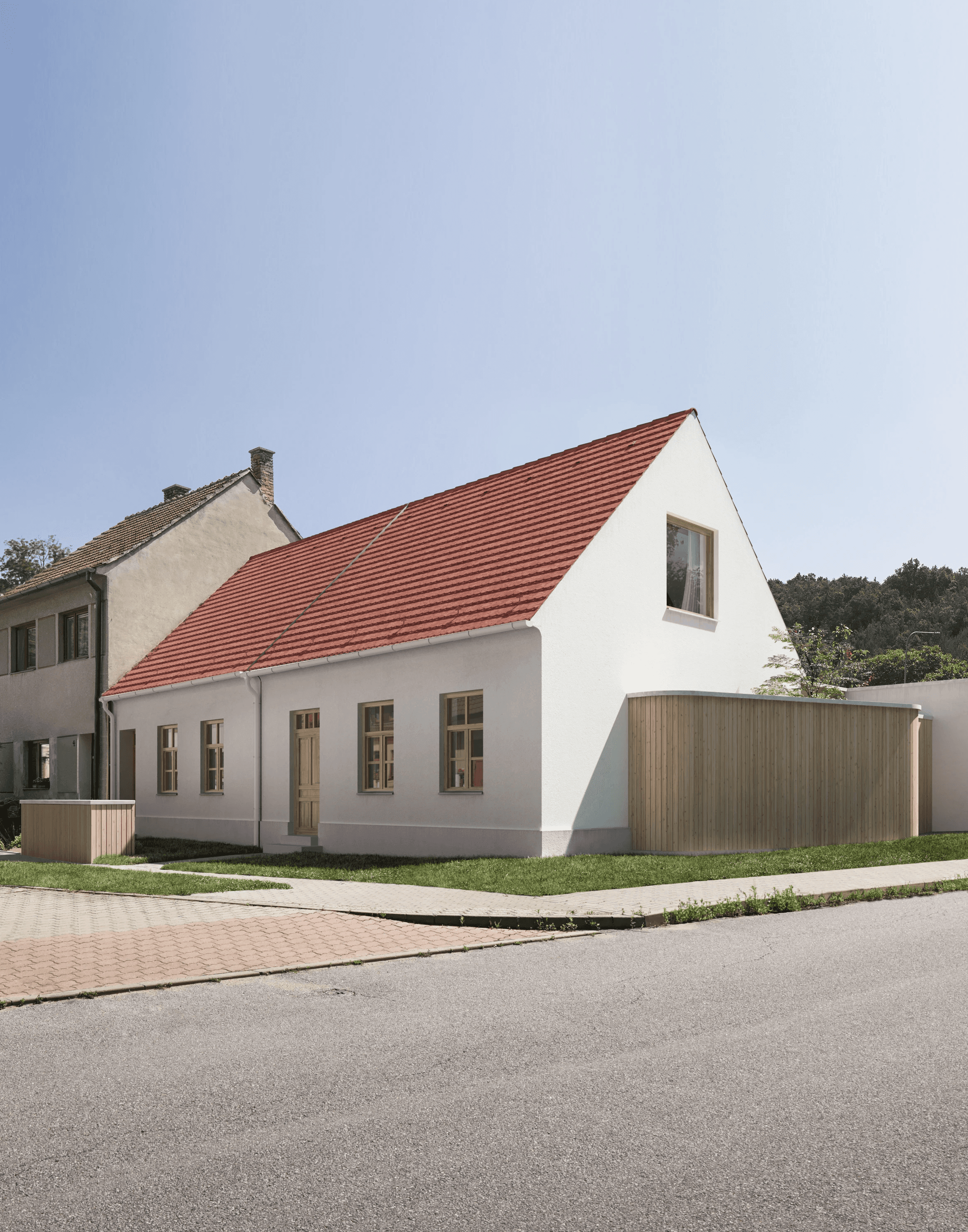Na konci ulice stojí starý dům. Žije tu mladá rodina s čtyřnohým parťákem, která toužila po více prostoru. Po místě, kde mohou být spolu i každý sám. Kde se dá tančit, tvořit, vařit, zvát přátele a zároveň mít klid. Chtěli domov, který je otevřený, přátelský a opravdový, stejně jako oni sami.